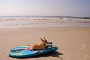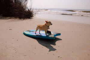 Senor Samuel Skamper and I decided to go out and catch some early morning rides. Sammy carefully analyzes the waves, yup… that’s the one, and finally Cowabunga dude!